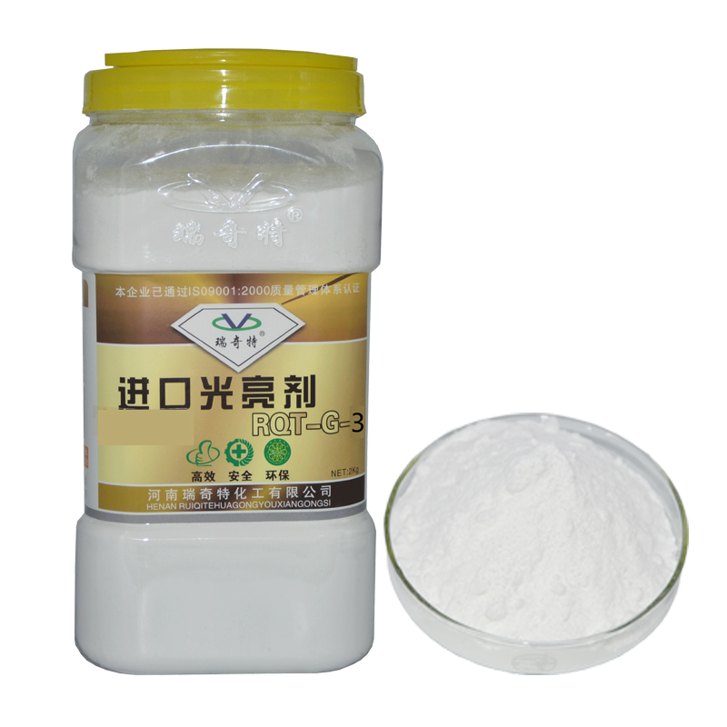 - rot-cb-3荧光增白剂可溶于80倍的软水中呈阴离子性质,耐酸碱程度为ph=5~11,它可与阴离子表面活性剂或染料、非离子表面活性剂、双氧水同浴使用。在同等用量的情况下白度比vbl、dms高3-5倍。